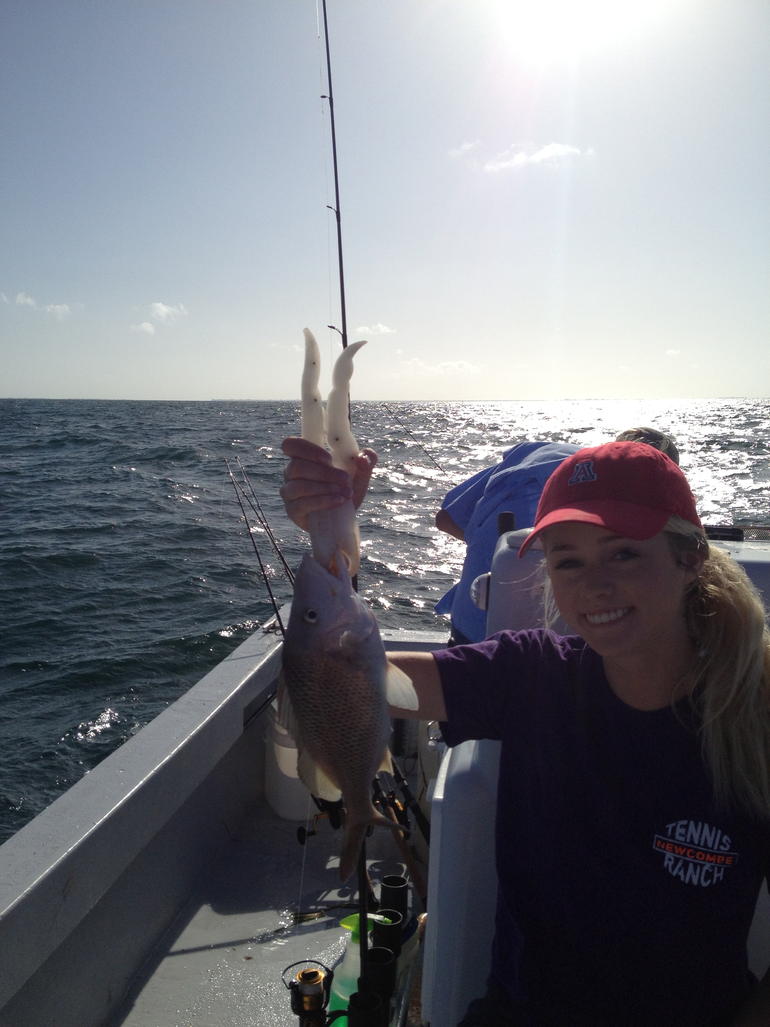 Everyone caught Grouper except me. I caught a lovely french snapper and Captain Joey sent it back to the sea.